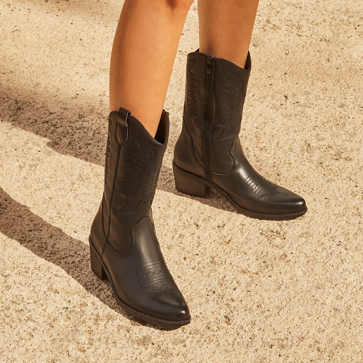 Bota Campera Negro Bordados