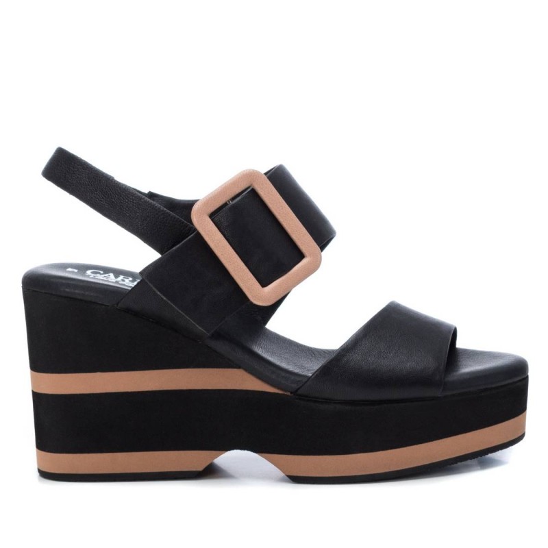 Cuña de piel negra , Marca Carmela .