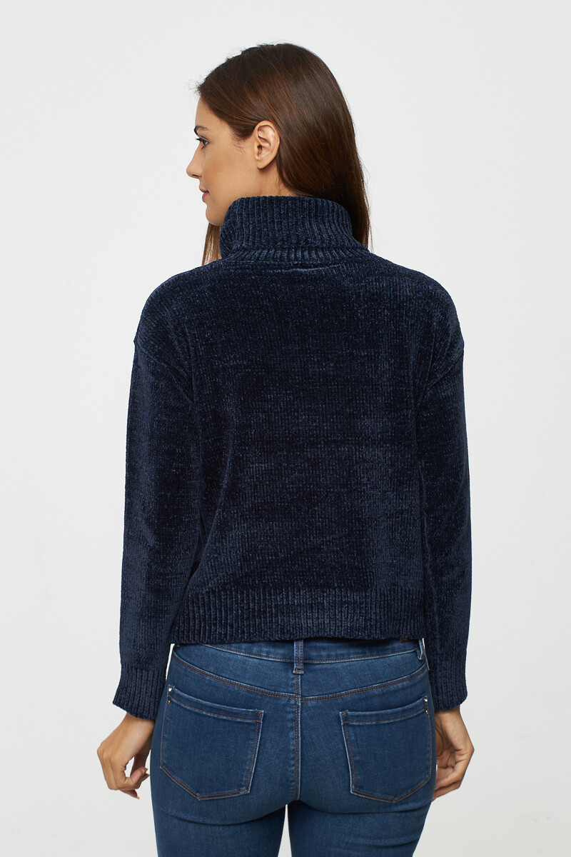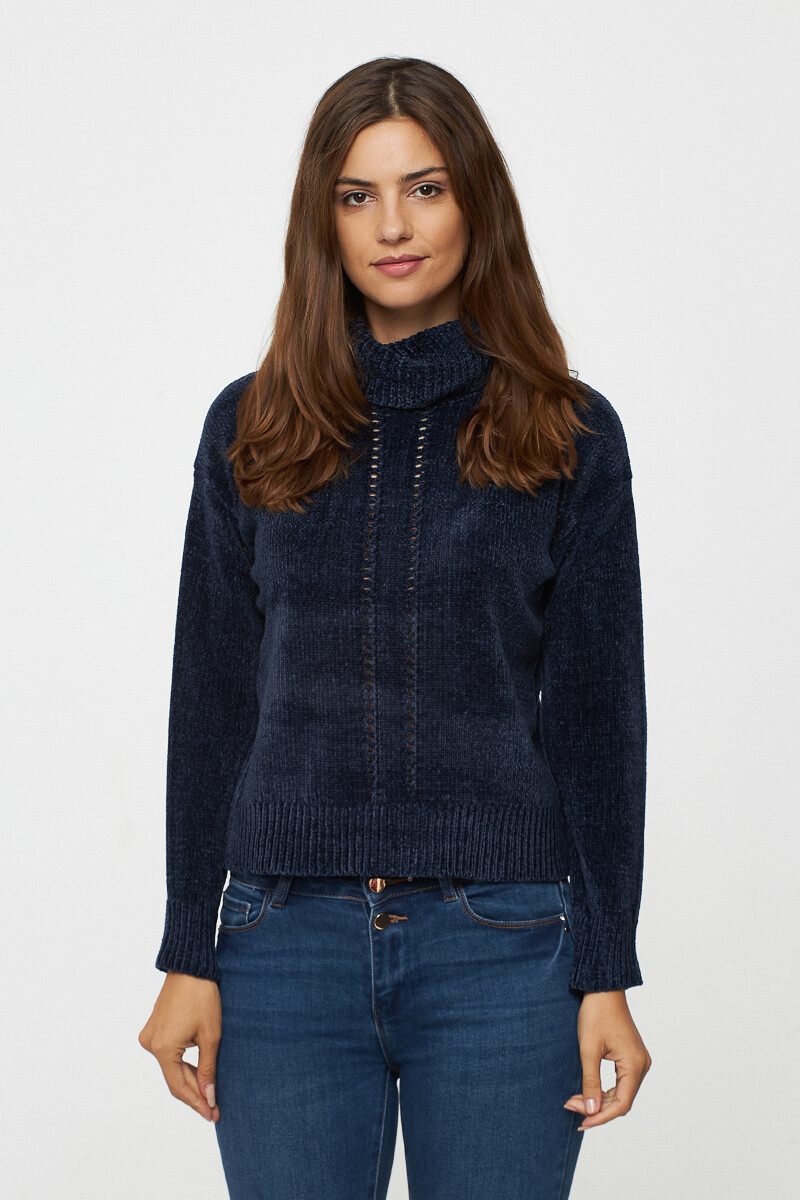 Jersey chenilla , tacto muy suave, cuello vuelto.