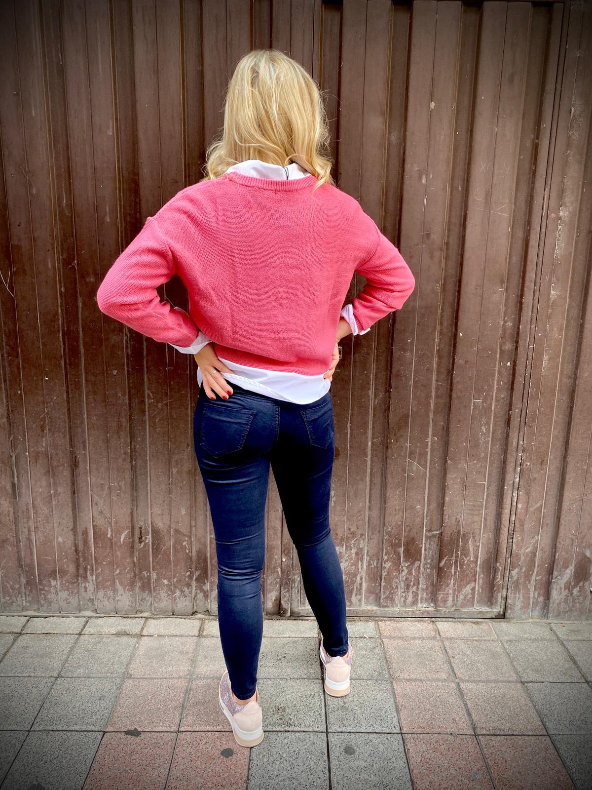 Pantalón azul marino, elástico, se adapta perfectamente al cuerpo. En la foto se muestra la talla 36.